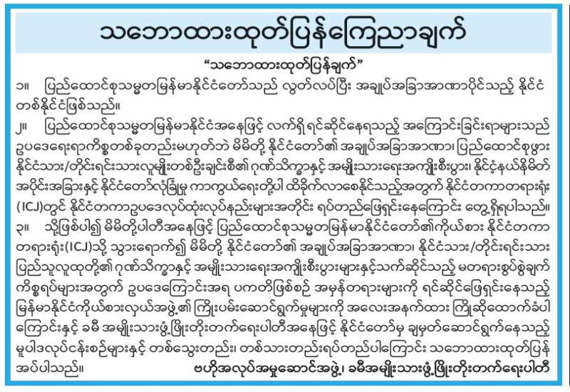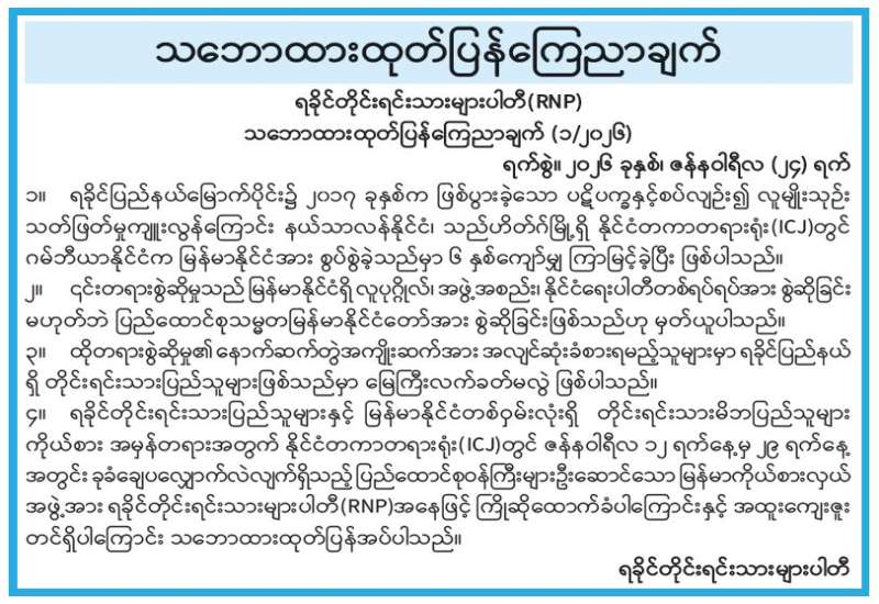 ခေတ်သစ်ပြည်သူ့ပါတီ၏ သဘောထားထုတ်ပြန်ချက်