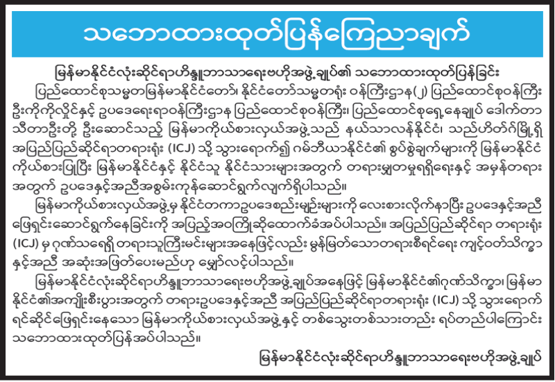 မြန်မာနိုင်ငံခရစ်ယာန်အသင်းတော်များကောင်စီ သဘောထားထုတ်ပြန်ချက်