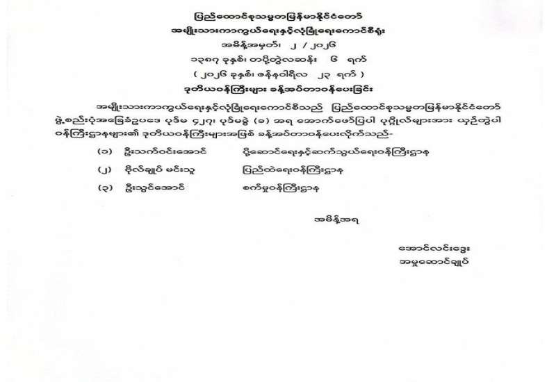 ဒုတိယဝန်ကြီးများ ခန့်အပ်တာဝန်ပေးခြင်း