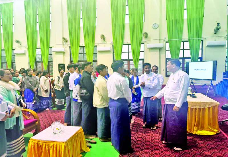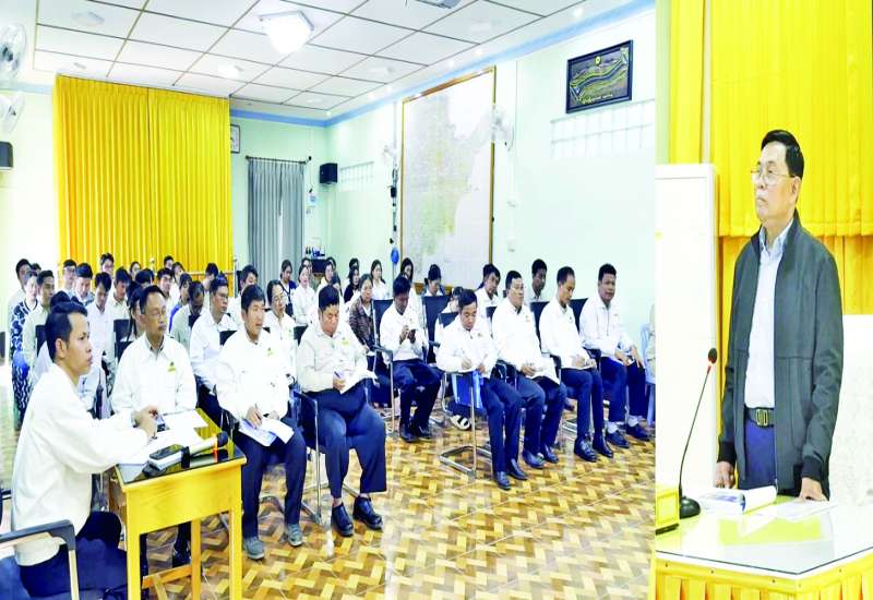 ဆောက်လုပ်ရေးဝန်ကြီးဌာန ပြည်ထောင်စုဝန်ကြီး ဦးမျိုးသန့်သည် ယနေ့မွန်းလွဲပိုင်းတွင် ရှမ်းပြည်နယ် (အရှေ့ပိုင်း) ခရိုင်၊ မြို့နယ်များရှိ ဆောက်လုပ်ရေးဝန်ကြီးဌာနအောက် ဦးစီးဌာနများမှ ဝန်ထမ်းများနှင့်တွေ့ဆုံ၍ ကျိုင်းတုံ-လွယ်မွေလမ်း ပြုပြင်ထိန်းသိမ်းခြင်းလုပ်ငန်းများ ဆောင်ရွက်နေမှုအခြေအနေကို ကွင်းဆင်းကြည့်ရှုစစ်ဆေးသည်။
