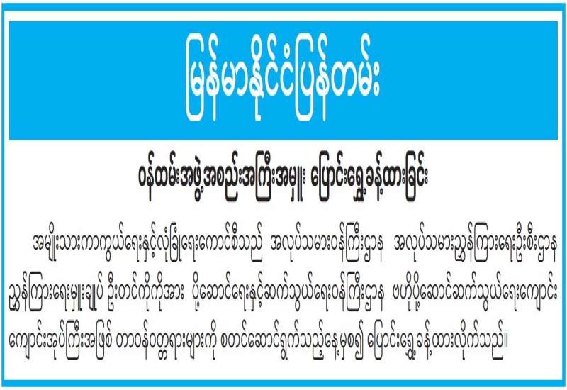 ဝန်ထမ်းအဖွဲ့အစည်းအကြီးအမှူး ပြောင်းရွှေ့ခန့်ထားခြင်း
