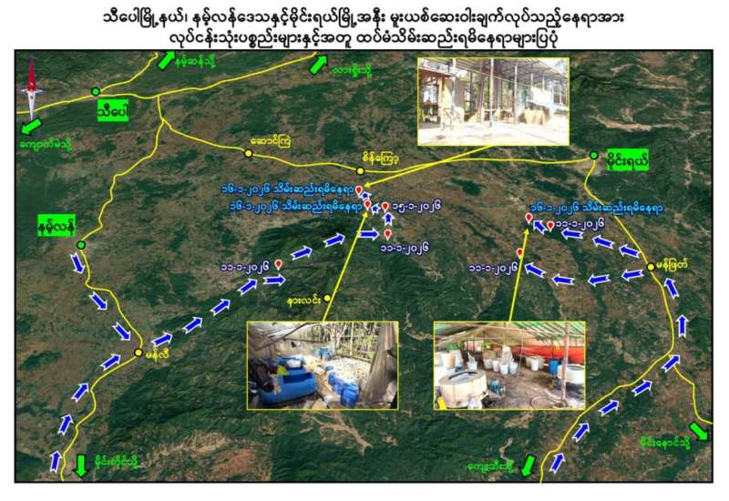 မြန်မာနိုင်ငံအနေဖြင့် မူးယစ်ဆေးဝါးတိုက်ဖျက်ရေးလုပ်ငန်းစဉ်များကို အမျိုးသားရေးတာဝန်တစ်ရပ်အဖြစ်ခံယူ၍ နိုင်ငံတစ်ဝန်းမူးယစ်ဆေးဝါးထုတ်လုပ်မှုနှင့် တရားမဝင်ရောင်းဝယ်မှု တားဆီးကာကွယ်နှိမ်နင်းရေးလုပ်ငန်းများကို အင်တိုက်အားတိုက် စဉ်ဆက်မပြတ်ဆောင်ရွက်လျက်ရှိရာ ၂၀၂၆ ခုနှစ်၊ ဇန်နဝါရီ ၉ ရက်၊ ၁၀ ရက်နှင့် ၁၁ ရက်တို့တွင် ရှမ်းပြည်နယ် (မြောက်ပိုင်း)၊ သီပေါမြို့နယ်နှင့် မိုင်းရယ်မြို့နယ်များအတွင်း အွန်လိုင်းလိမ်လည်လောင်းကစားမှုပြုလုပ်ရာတွင် အသုံးပြုသည့်ပစ္စည်းများနှင့် မူးယစ်ဆေးဝါးချက်လုပ်ရာတွင် အသုံးပြုသည့် ပစ္စည်းကိရိယာအမြောက်အများကို သိမ်းဆည်းရမိခဲ့သည့်သတင်းအား ဇန်နဝါရီ ၁၅ ရက်နေ့တွင်လည်းကောင်း၊ မိုင်းရယ်မြို့၏ အနောက်မြောက်ဘက် ၃၄ ကီလိုမီတာအကွာ၊ နားလင်းကျေးရွာ၏ အရှေ့မြောက်ဘက် ၁၄ ကီလိုမီတာခန့်အကွာတွင် မူးယစ်ဆေးဝါးချက်လုပ်သည့် နေရာများကို ထပ်မံဖမ်းဆီးရမိခဲ့သည့် သတင်းအား ဇန်နဝါရီ ၁၅ ရက်နေ့တွင်လည်းကောင်း အသီးသီးထုတ်ပြန်ပြီးဖြစ်သည်။