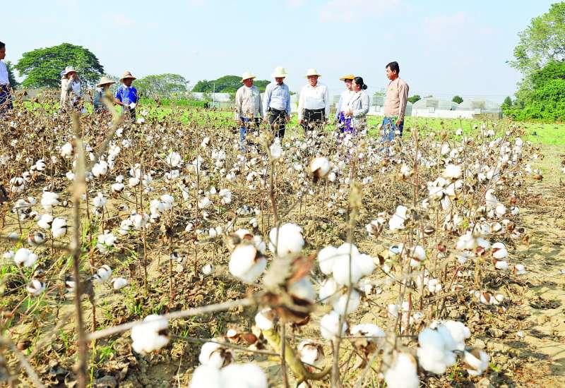 စိုက်ပျိုးရေး၊မွေးမြူရေးနှင့်ဆည်မြောင်းဝန်ကြီးဌာန ပြည်ထောင်စုဝန်ကြီး ဦးမင်းနောင်သည် ယနေ့မွန်းလွဲပိုင်းတွင် နေပြည်တော် ပျဉ်းမနားရှိ စိုက်ပျိုးရေးနှင့်မွေးမြူရေးသိပ္ပံကျောင်းဝင်းအတွင်း မျိုးယှဉ်ပြိုင်စမ်းသပ်စိုက်ပျိုးထားသည့် ချည်မျှင်ရှည်ဝါစိုက်ခင်းကို ကြည့်ရှုစစ်ဆေးသည်။