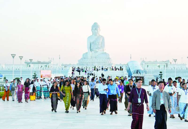 လူငယ်ငြိမ်းချမ်းရေးဖိုရမ် ၂၀၂၆ တက်ရောက်ရန် နေပြည်တော်၌ ရောက်ရှိနေသည့် တိုင်းဒေသကြီးနှင့် ပြည်နယ်များမှ လူငယ်ကိုယ်စားလှယ်အဖွဲ့များ၊ အုပ်ချုပ်သူများနှင့် တာဝန်ရှိသူများသည် ယနေ့ညနေပိုင်းတွင် ပြည်ထောင်စုနယ်မြေ နေပြည်တော် ဒက္ခိဏသီရိမြို့နယ်ရှိ ဗုဒ္ဓဥယျာဉ်ဝတ္ထုကံတော်၌ တည်ထားပူဇော်ထားသည့် ကမ္ဘာပေါ်ရှိ ထိုင်တော်မူကျောက်ဆစ်ဗုဒ္ဓရုပ်ပွားတော်များအနက် ဉာဏ်တော်အမြင့်ဆုံးဖြစ်သည့် မာရဝိဇယဗုဒ္ဓရုပ်ပွားတော်မြတ်ကြီးအား သွားရောက်ဖူးမြော်ကြည်ညိုကြသည်။