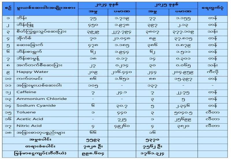 မြန်မာနိုင်ငံ၏ မူးယစ်ဆေးဝါးတားဆီးနှိမ်နင်းရေးလုပ်ငန်းများအား အမျိုးသားရေးတာဝန်တစ်ရပ်အနေဖြင့် သတ်မှတ်၍ တားဆီးနှိမ်နင်းရေးအဖွဲ့များဖြစ်သည့် တပ်မတော်၊ မြန်မာနိုင်ငံရဲတပ်ဖွဲ့နှင့် အကောက်ခွန်ဦးစီးဌာနတို့မှ ဆက်စပ်ဌာနဆိုင်ရာများနှင့် ပူးပေါင်း၍ တစ်နိုင်ငံလုံးလွှမ်းခြုံသည့် မူးယစ်ဆေးဝါးသတင်း ရယူဖော်ထုတ်ဖမ်းဆီးရမိရေးစီမံချက် ချမှတ်ပြီး တားဆီးနှိမ်နင်းရေးလုပ်ငန်းများကို အရှိန်အဟုန်မြှင့်ဆောင်ရွက်ခဲ့သည်။