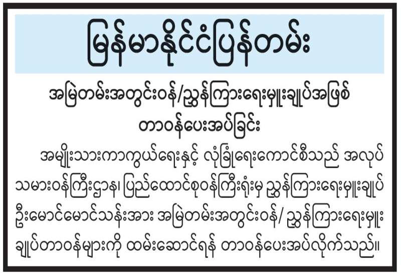 ရန်ကုန်မြို့နှင့် မန္တလေးမြို့အတွက် ရည်ညွှန်းလက်ကားဈေးနှုန်းများနှင့် ပြည်ထောင်စုနယ်မြေ နေပြည်တော်၊ တိုင်းဒေသကြီး/ ပြည်နယ် မြို့တော်များအတွက် ရည်ညွှန်းလက်လီဈေးနှုန်းများ