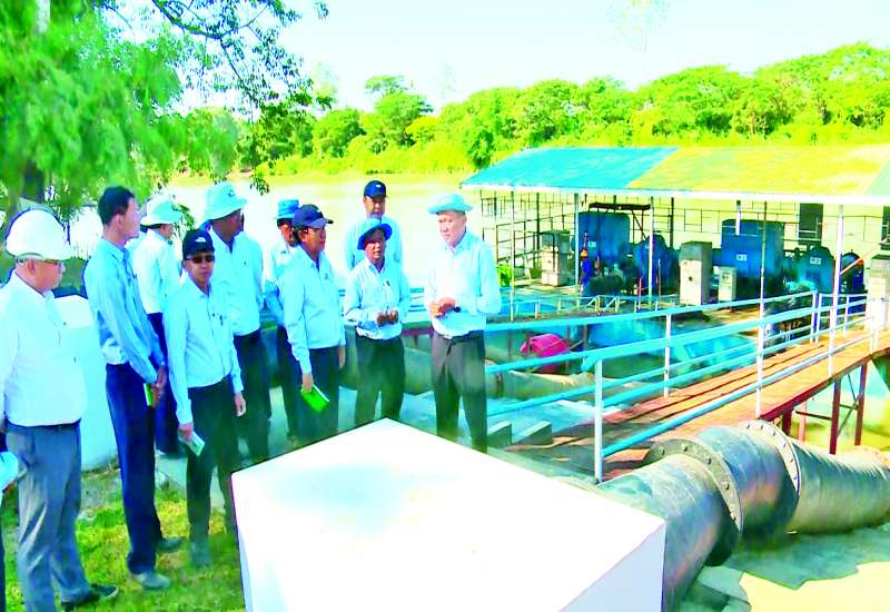 စိုက်ပျိုးရေး၊ မွေးမြူရေးနှင့် ဆည်မြောင်းဝန်ကြီးဌာန ဒုတိယဝန်ကြီး ဦးဗိုလ်ဗိုလ်ကျော်သည် ဇန်နဝါရီ ၉ ရက် နံနက်ပိုင်းက ရန်ကုန်တိုင်းဒေသကြီး တိုက်ကြီးမြို့နယ်ရှိ သရက်ချောင်းနှင့် အထက်စု(မြစ်ကျိုး) လျှပ်စစ်မြစ်ရေတင်စီမံကိန်း 900 KW On-Grid and Off-Grid ဆိုလာစနစ် တပ်ဆင်ဆောင်ရွက်နေမှုအခြေအနေများနှင့် မြင်ရေတင်မှ နွေစပါးနှင့် နွေအခြားသီးနှံ စိုက်ပျိုးရေပေးဝေနေမှုတို့ကို ကြည့်ရှုစစ်ဆေးသည်။