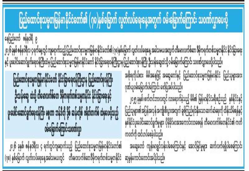 ပြည်ထောင်စုသမ္မတမြန်မာနိုင်ငံတော်၏ (၇၈)နှစ်မြောက် လွတ်လပ်ရေးနေ့အတွက် ဝမ်းမြောက်ကြောင်း သဝဏ်လွှာပေးပို့