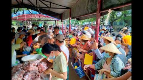 ကျိုင်းတုံမြို့ ယမ်းခမ်းစျေးရှေ့တွင် ကိုဗစ်-၁၉ ရောဂါကာကွယ်ရေး နှာခေါင်းစည်းများ အခမဲ့ဖြန့်ဝေ
