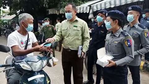 သပိတ်ကျင်းမြို့နယ်တွင် ကိုဗစ်-၁၉ ကြိုတင်ကာကွယ်ရေးအတွက် နှာခေါင်းစည်းများ အခမဲ့ဖြန့်ဝေခြင်းနှင့် အသိပညာပေးလက်ကမ်းစာစောင်များဖြန့်ဝေ