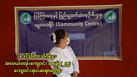 ရန်ကုန်အနောက်ပိုင်းခရိုင်(ဗဟန်း)လူထုအခြေပြုဗဟိုဌာန Community Centre ၌အရာထမ်း၊ အမှူထမ်းဝန်ထမ်းများနှင့် ငွေစာရင်းရေးဆွဲနည်း သင်တန်းဖွင့်လှစ်