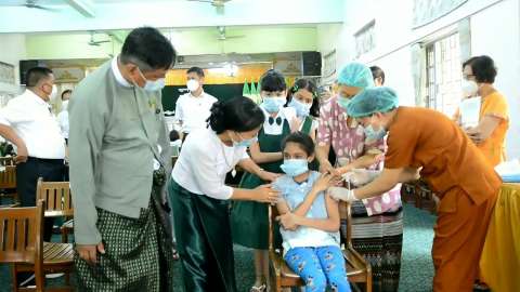 ကျောင်းသား/သူများအား ကိုဗစ်-၁၉ရောဂါကာကွယ်ဆေးထိုးနှံရာသို့ တိုင်းဒေသကြီးဝန်ကြီးချုပ် ကြည့်ရှုစစ်ဆေး